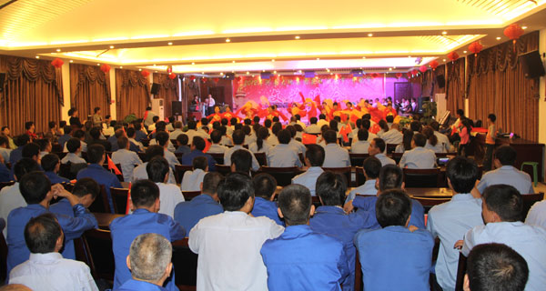 集团董事长张彪到会致辞,县委宣传部马丽部长应邀到会场并发表了重要讲话、县总工会郭鹏飞主席等领导观看了演出,公司领导、各部门代表及职工家属共500多人观看了演出。