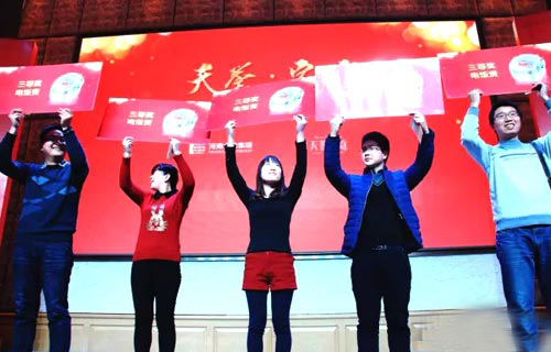 1月9日晚,“天誉·家宴——大地集团&领创·天誉华庭业主答谢会”在郑州裕达国贸酒店盛大启动,以此回馈广大业主对天誉华庭的鼎力支持和厚爱。大地集团携旗下领创置业、大地水泥、贾湖酒业等企业领导、代表,与各位业主、媒体嘉宾1000多人汇聚一堂,共同度过了一个温情难忘的夜晚。 寒冷的天气并未影响大家相聚的热情,下午不到5点,现场签到处已门庭若市,在工作人员贴心引导下,大家有序进行微信签到,进入答谢会现场。晚上6点左右,一段阐述大地集团恢宏实力和过往数载坚实历程的宣传短片拉开了本次活动的序幕。大地集团董事长张彪、贾湖酒业总经理赵书民、领创置业的执行董事殷红叶分别发表了热情洋溢的致辞。 为使各位来宾度一个欢乐充实的夜晚,“天誉·家宴”不仅有丰盛的美食、美酒,更有诸多精彩节目助兴!动感炫目的电光舞,让现场的来宾沉浸在梦幻美妙世界;展现领创·天誉华庭峥嵘发展轨迹的沙画&独舞表演,令在座各位充分领略了匠心品质的倾情缔造;炫酷的魔术表演、新奇好玩的泡泡秀,让人目不暇接;一曲《相亲相爱一家人》,天誉一家人,喜乐祥和气氛满溢! 紧接着,微信摇一摇抢红包以及多种重磅大奖的抽取颁发,将现场气氛又一次的推向了高潮。领创置业精心准备了多重好礼,表达了对于各位家人的感恩之情!苹果6S Plus、48寸液晶电视、洗衣机、电饭煲、富平春酒等丰厚礼品,超高得奖率,让不少业主好运连连,收获满满幸运大奖!寒冷的冬日夜晚因这里的欢声笑语变得红红火火、热情欢腾。 觥筹交错间,欢声笑语中,“天誉·家宴——大地集团&领创·天誉华庭业主答谢会”圆满结束。