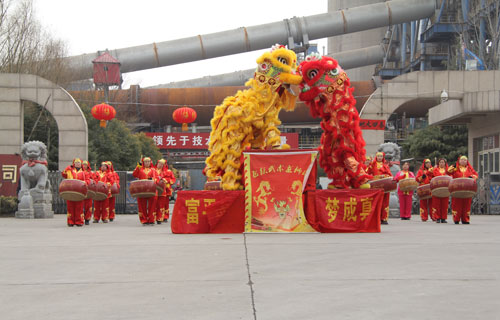 狮舞龙腾耀盛世,腾跃盘旋呈祥瑞。2月24日上午,宝丰县第二十四届民间艺术大赛如期举行,在县城人民路县公安局门前,由大地集团表演队——来自许昌市的飞跃武术龙狮团的龙飞狮舞成为大赛的亮点。 为了搞好此项活动,大地集团聘请许昌市飞跃武术龙狮团和许昌卷烟厂黄金叶盘鼓队前来表演,青龙翻腾越四海,瑞狮起舞闹八方,一条金色的巨龙在众人的娴熟操纵下上下翻飞腾腾而起,巨龙摇头摆尾变换着雄壮身姿,象征着大地集团热烈红火的发展前景,也宣示着宝丰大地的腾腾创业气息。双狮追逐嬉戏,你追我赶,惟妙惟肖,预示着生机勃勃的大地集团不断发生着新的变化,也预示着这片父城热土的巨大活力。盘鼓敲起来!阵阵高亢有力的宏音,似是催促着大地集团全体干部职工奔向新征程。精彩的表演吸引了大批观众,将演出现场围拢得水泄不通,一个个拿出手机不停地拍照录像……。 随后,龙狮团又来到大地集团慰问演出,演职人员在大地公司院内摆开龙门阵,大展身手。为广大干部职工献上了一场精彩的龙狮盛宴,赢来阵阵掌声。 最后,由双狮引路,巨龙表演进入大地公司中控楼,向大地集团拜年祈福、期盼狗年大吉!