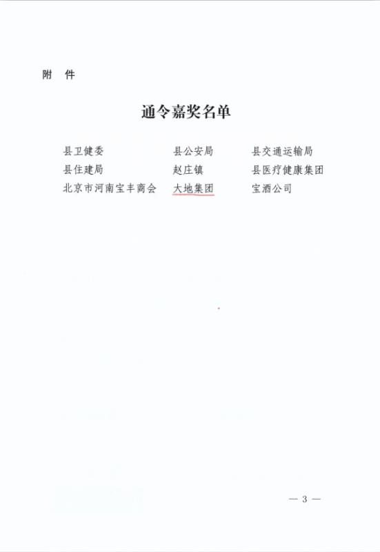 日前,县政府专门下发嘉奖令,对全县疫情防控工作中涌现出的先进单位予以表彰,亚搏在线登录因工作成绩突出、贡献重大,受到县政府的通令嘉奖。 面对突如其来的新冠肺炎疫情,大地集团迅速行动,坚决把职工的身体健康和生命安全放在首位。在不折不扣地执行省、市、县新冠肺炎疫情防控命令的同时,结合自身实际,周密部署,狠抓落实。第一时间成立了新冠肺炎疫情联防联控工作领导小组,制定了详细的《疫情防控方案》和《疫情应急预案》。集团各部门、各公司认真落实各项防控措施,步调一致、严防坚守,疫情防控和复工复产工作均紧张有序地进行。 大地集团始终弘扬公益精神,积极承担社会责任。新冠肺炎疫情发生以来,大地集团高度关注,在做好自身防控工作的同时, 2月1日下午,集团向河南省慈善总会捐助现金1000万元人民币,用于平顶山市和宝丰县疫情防控工作,为打赢这次疫情防控攻坚战贡献一份力量。