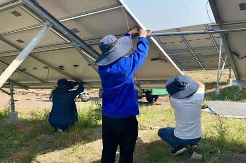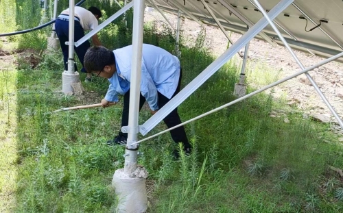 二、电站维护方面: (1)清洁积灰,提高能量转化效率。由于沉积物长期附在光伏组件表面,影响组件的输出功率,从而减少发电量以及造成热斑效应、组件衰减以及其它严重后果;为了减少灰尘遮蔽的影响,根据天气情况、降雨量分布情况、每日巡检情况,我们会合理安排人员安全上岗,对组件进行有效清洗,使效益产出最大化。 (2)除草治理,消除安全隐患。生长在光伏区与电站周边的杂草树木是影响电站发电的一大隐患。当光伏组件被杂草遮挡时极易产生热斑效应,不仅会“偷走”电站的发电量,更会“缩短”光伏组件的寿命,严重时还会引发火灾。为此,运维人员集中将生长过高的植物割除,将干枯的杂草树枝等进行了清理,同时加强光伏区日常防火检查和防护工作,及时消除光伏区火灾隐患,确保设备正常运行。