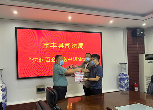 为深入推进“万人助万企”活动,营造良好的法治化营商环境,9月23日上午,宝丰县司法局高级法律专务高凯乐、二级主任科员杨勇一行带领县企业法治服务团队,深入亚搏在线登录,开展“法治体检”及“法润百企”送书活动,帮助企业“把脉问诊”,提升企业的法律风险意识和防范水平。集团副总裁兼行政部部长张怀点、法务部部长王延玫给予了热情接待。