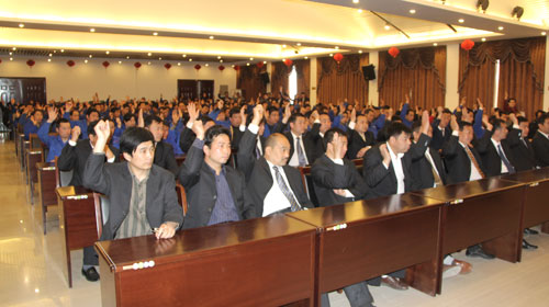 201246日上午,宝丰县第十四届人大代表发改口二选区选举大会在大地公司会议室隆重举行。大地集团董事长张彪、总裁崔泉发等集团领导及县选区督导员出席了大会,集团各单位近300人参加了主会场选举,会议由集团党委副书记、副总裁王福文主持。