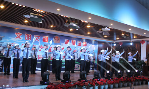 9月26日晚,大地公司北门三楼会议室内流光异彩、载歌载舞,来自宝丰县公安交警大队的交通安全宣传文艺小分队走进企业文艺演出在这里精彩上演。县委常委、县政法委书记杨占杰,县人大常委会副主任刘怀振、县政府副县长胡进栓、县政协副主席顾海平以及市、县公安交警部门的有关领导和大地集团的员工观看了文艺节目。 大地集团副总裁李保录代表大地集团致欢迎词。他指出,交通安全文艺小分队来我公司演出,体现了交警部门领导的关心和厚爱,体现了“警民一家”的亲情合力,给我们带来了精彩纷呈的文艺大餐,使我们的广大员工在娱乐和欢笑中,学到了更多的交通安全知识,为争当遵守交规的好员工,为倡导文明出行的新风尚做出我们应有的努力。 晚会在舞蹈《新时代女兵》整齐划一的优美舞姿中拉开了演出的大幕,魔术表演《魔法空间》、快板《交通人人讲安全》、乐器表演《牧羊曲》、三句半《交通安全记心上》使晚会跌宕起伏、掌声不断,特别是现场交通安全知识问答互动环节,大地员工频频举手、争相抢答。单口相声《都是为你好》、交警手势舞《快乐串烧》使观众如痴如醉、屏神静气。最后,晚会在歌伴舞《国家》的优美舞曲中圆满结束。