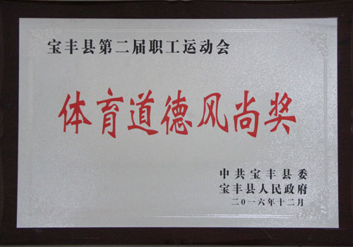 亚搏(中国) >> 走进大地 >>资质荣誉 >> 宝丰县第二届职工运动会体育道德风尚奖