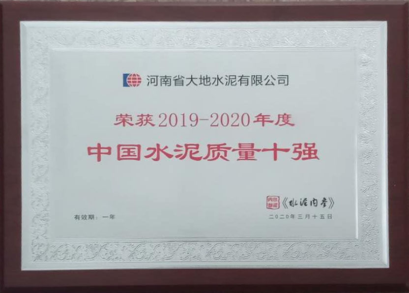 亚搏(中国) >> 走进大地 >>资质荣誉 >> 荣获2019-2020年度中国水泥质量十强
