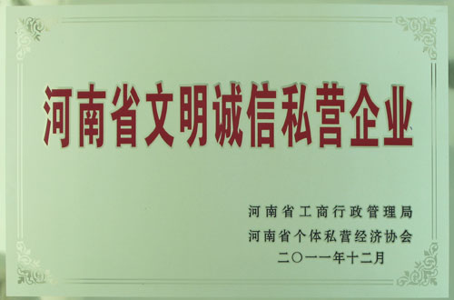 亚搏(中国) >> 走进大地 >>资质荣誉 >> 河南省文明诚信私营企业