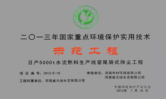 亚搏(中国) >> 走进大地 >>资质荣誉 >> 2013年国家重点环境保护实用技术示范工程